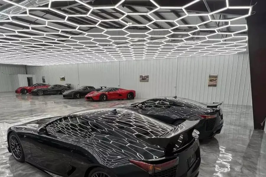 Garaż jak z profesjonalnego studia detailingu – jak oświetlenie LED hexagonalne zmienia przestrzeń do pracy z autem